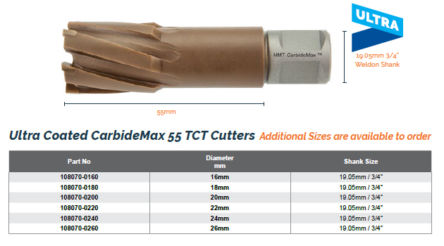 HMT Ultra Coated Carbidemax 55mm Magdrill Cutter Set